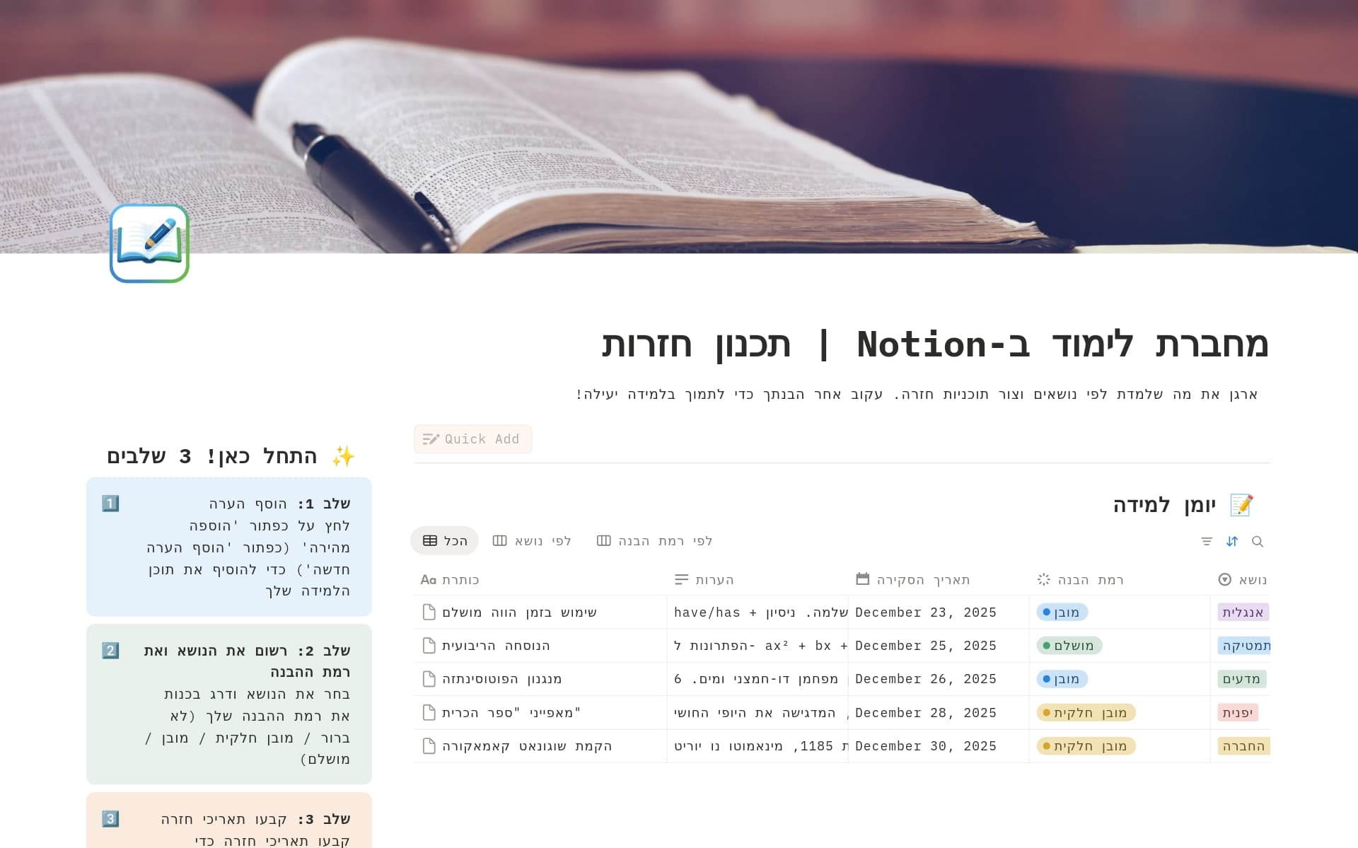 לוח תכנון ללימודים