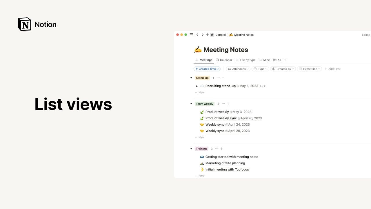 データベースのイベントを他のアポやミーティング、計画と一緒に追跡したい場合は、NotionデータベースをNotionカレンダーに接続することで、すべての重要な予定を一か所で確認することができます。Notionカレンダーから、データベースの日付を直接更新することもできます。その方法についての詳細はこちら →