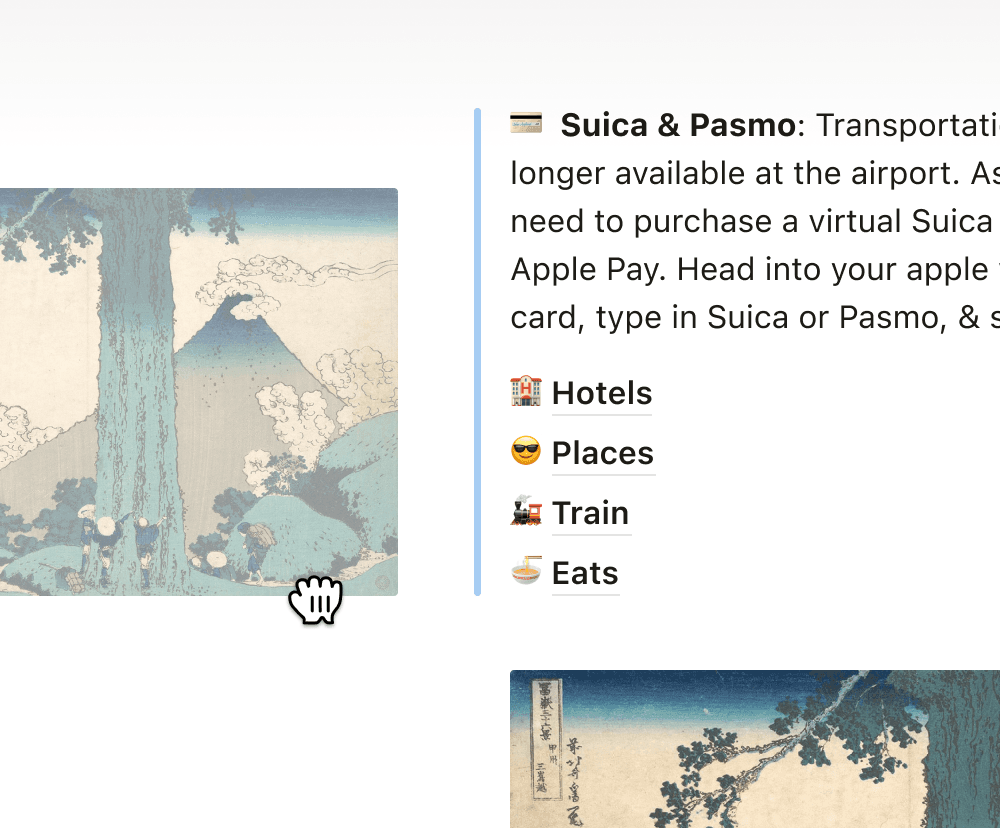 画像や動画、Spotifyプレイリストなどを埋め込んで、ワークスペースとドキュメントをパーソナライズします。