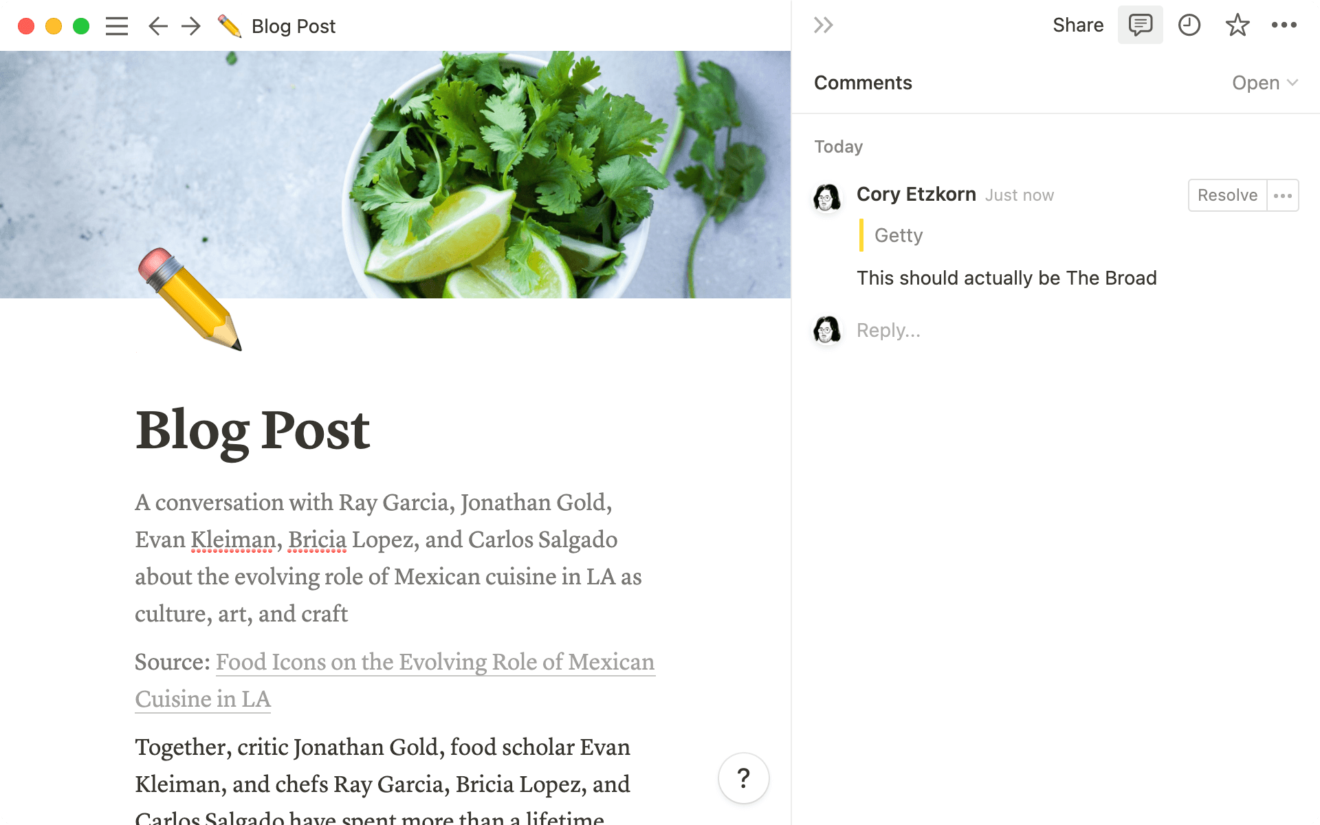 ステークホルダーへのフィードバック依頼、四半期目標のブレインストーミング、プロジェクト推進の議事メモや資料などに、より見やすく、確認しやすくなったNotionのコメント機能をご活用ください。